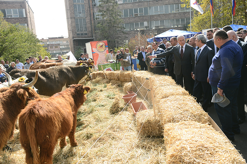 Նախագահը շրջել է հանրապետության ագրոպարենային ոլորտը ներկայացնող ցուցահանդեսի տաղավարներով, ծանոթացել իրենց արտադրատեսականին և ծառայությունները ներկայացնող շուրջ 50 հայաստանյան ընկերությունների գործունեությանը, նրանց ներկայացուցիչների հետ զրուցել այդ ընկերությունների ընթացիկ ծրագրերի, խնդիրների և զարգացման հեռանկարների շուրջ: Ցուցահանդեսային համալիրի բակում բացօթյա առանձին տաղավարներով «Արմպրոդէքսպո»-ին մասնակցել են նաև հանրապետության բոլոր մարզերը՝ իրենց բերք ու բարիքով: