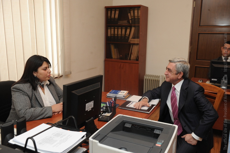 Նախագահ Սերժ Սարգսյանն այսօր այցելել է Տարածքային կառավարման նախարարություն և խորհրդակցություն անցկացրել ղեկավար անձնակազմի հետ՝ տարածքային կառավարման նախարարության գործունեության հիմնական ուղղություններով իրականացված աշխատանքների ու խնդիրների վերաբերյալ, հանդիպման ավարտին պատասխանել նաև նախարարության աշխատակիցներին հետաքրքրող հարցերին: Մինչ խորհրդակցությունը, Հանրապետության Նախագահը շրջայց է կատարել նախարարությունում, ծանոթացել աշխատակազմի ստորաբաժանումների աշխատանքային պայմաններին, զրուցել աշխատակիցների հետ` նրանց կողմից իրականացվող աշխատանքների, առկա խնդիրների, զարգացման հեռանկարների շուրջ: