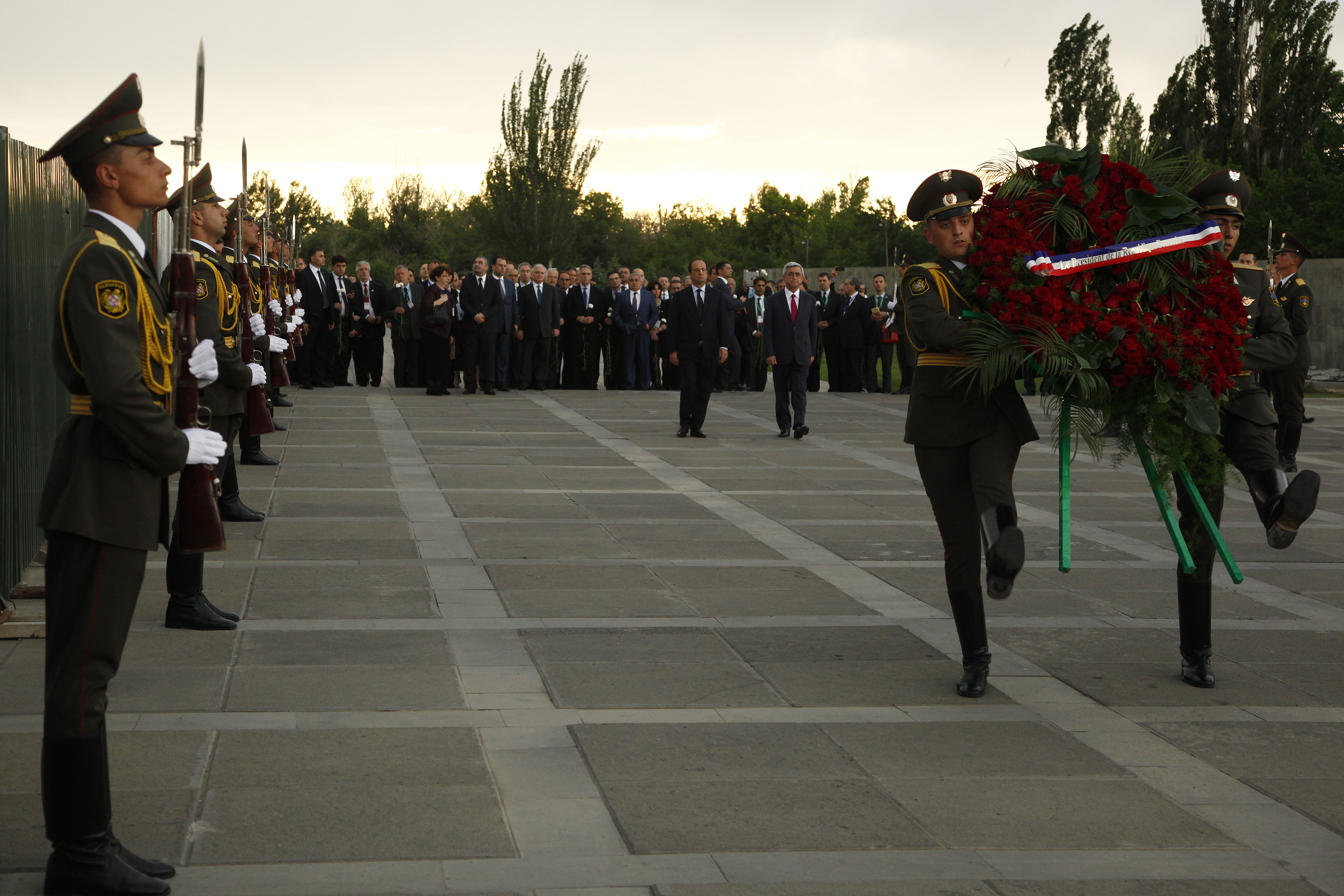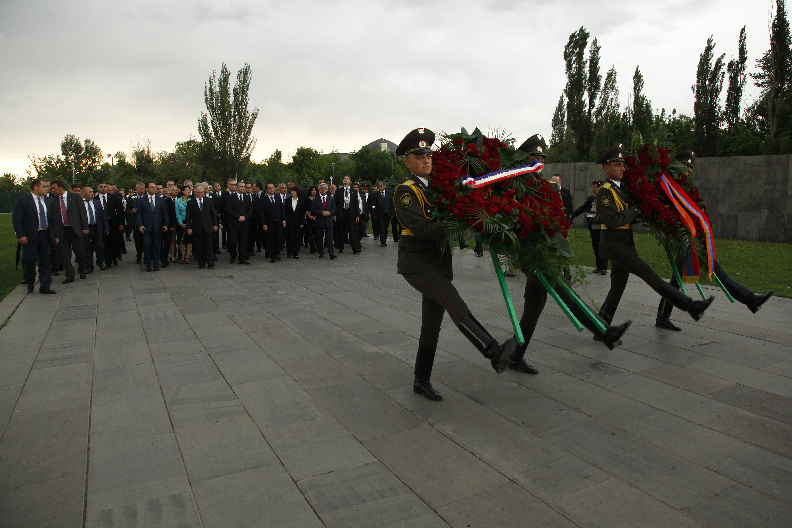 Սերժ Սարգսյանը և Ֆրանսուա Օլանդը ծաղկեպսակ են դրել Հայոց մեծ եղեռնի զոհերի հուշարձանին