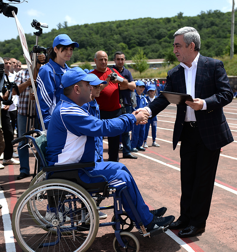 Նախագահ Սերժ Սարգսյանն այսօր Ծաղկաձորի օլիմպիական գլխավոր մարզահամալիրի մարզադաշտում դիտել է ՀՀ Նախագահի մրցանակի համար արդեն ավանդաբար՝ տասնմեկերորդ տարին անընդմեջ անցկացվող «Լավագույն մարզական ընտանիք» մրցույթի 2014թ. եզրափակիչ փուլի մրցումները: