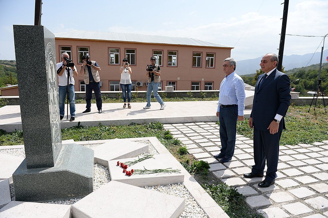Հայաստանի և Արցախի նախագահները Չափարում նաև ծաղիկներ են խոնարհել արցախյան ազատամարտում զոհվածների հիշատակը հավերժացնող հուշակոթողին: