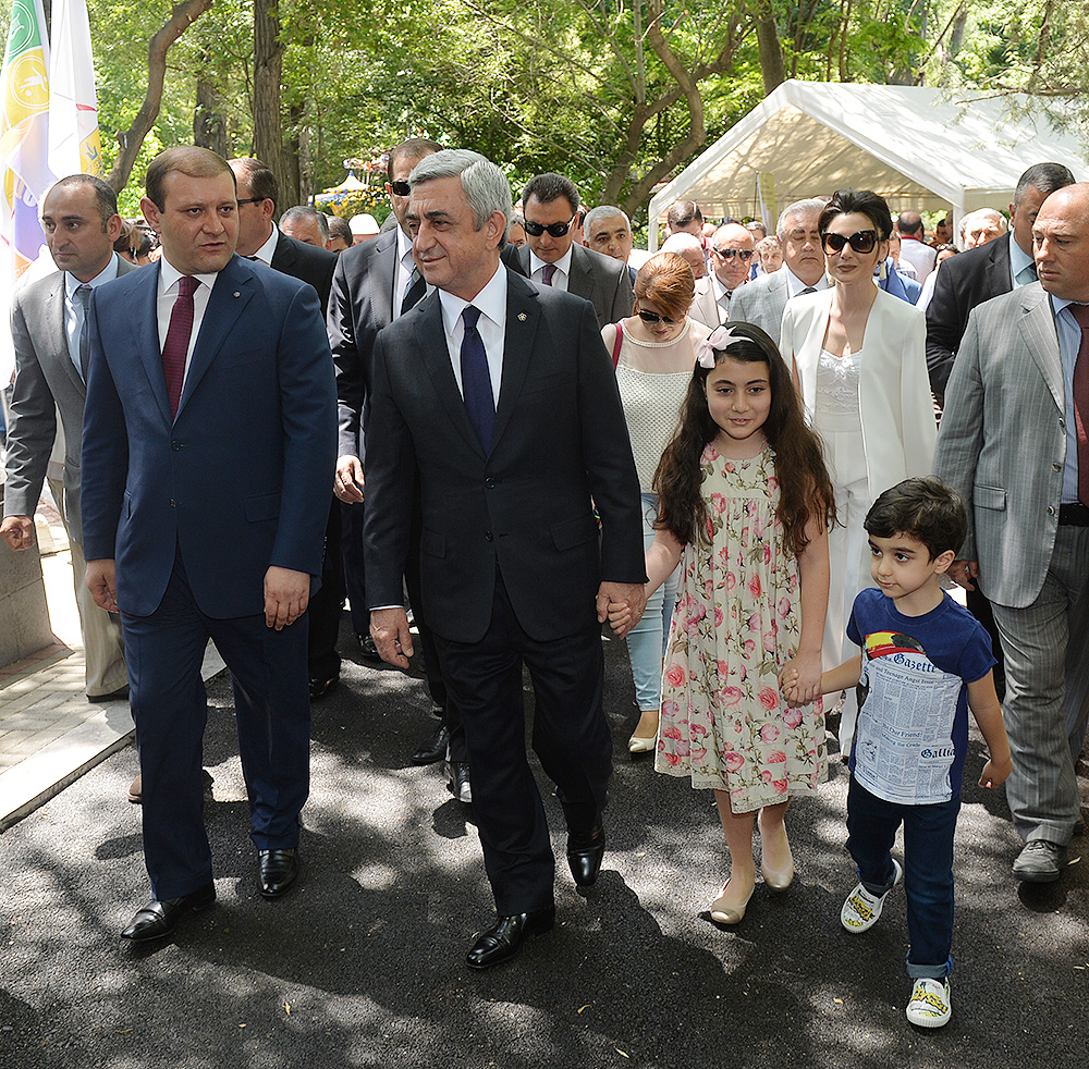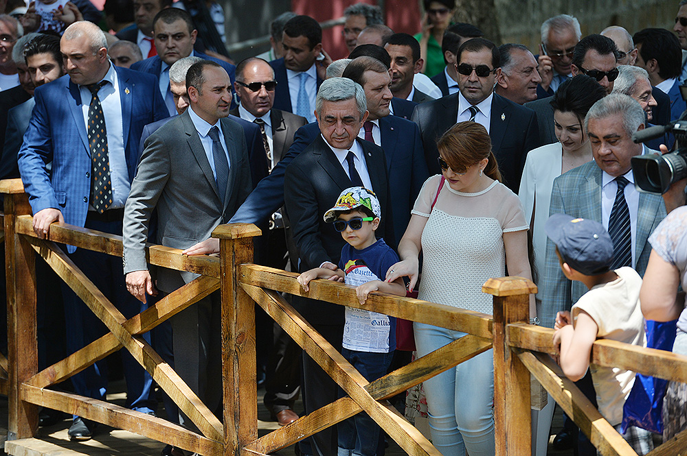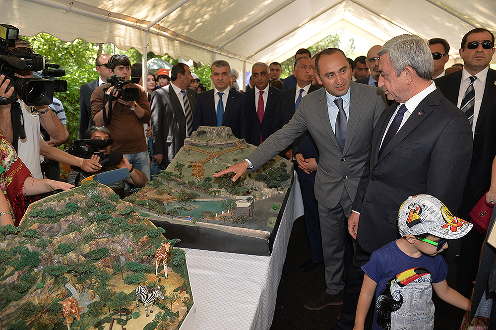 Նախագահ Սերժ Սարգսյանն այնուհետև թոռնիկների հետ այցելել է Երևանիկենդանաբանական այգի, որտեղ 2014-2015թթ. այգու վերանորոգման և զարգացման ծրագրով իրականացվել են մեծածավալ աշխատանքներ, ինչպիսիք չեն իրականացվել այգու հիմնադրման օրվանից։ Հանրապետության Նախագահը քաղաքապետ Տարոն Մարգարյանի ուղեկցությամբ շրջել է այգում, ծանոթացել Երևանի քաղաքապետարանի ենթակայությամբ գործող կենդանաբանական այգու բարեկարգման և զարգացման ուղղությամբ իրականացված աշխատանքներին, ինչպես նաև կենդանաբանական այգու նորակառույց ժամանակակից սարքավորումներով հագեցած բուժական կետում ստեղծված պայմաններին: