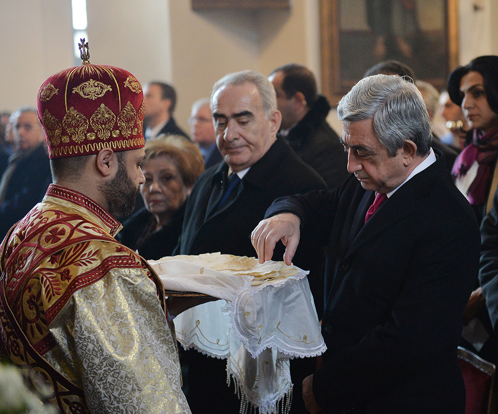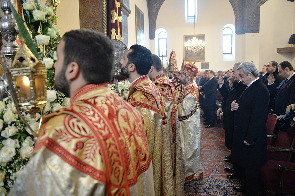 Նախագահ Սերժ Սարգսյանն այսօր ներկա է գտնվել Սուրբ Ծննդյան և Աստվածահայտնության տոնի առթիվ Մայր Աթոռ Սուրբ Էջմիածնում մատուցված պատարագին: