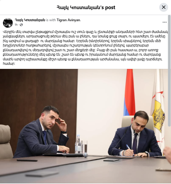 Երևանի քաղաքապետի մամուլի խոսնակ Հայկ Կոստանյանը գրում է․