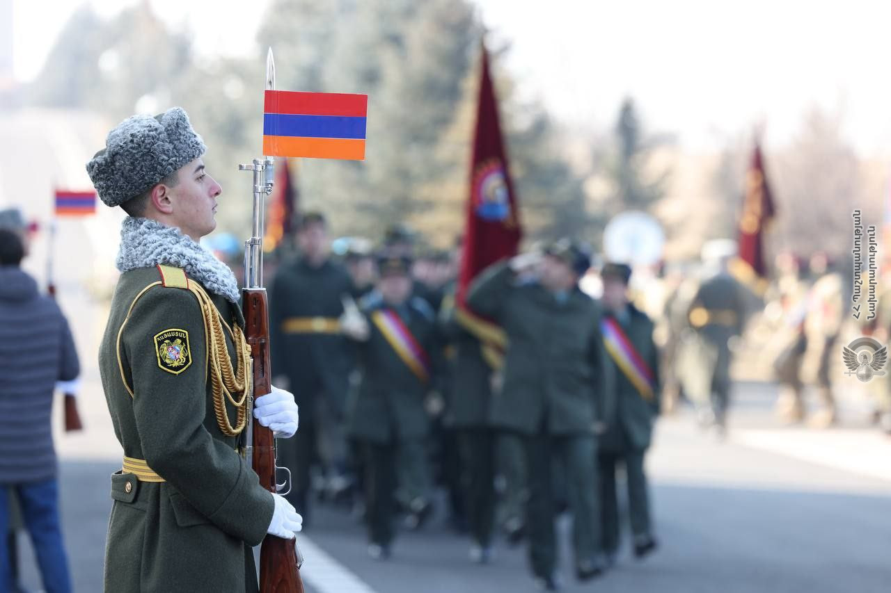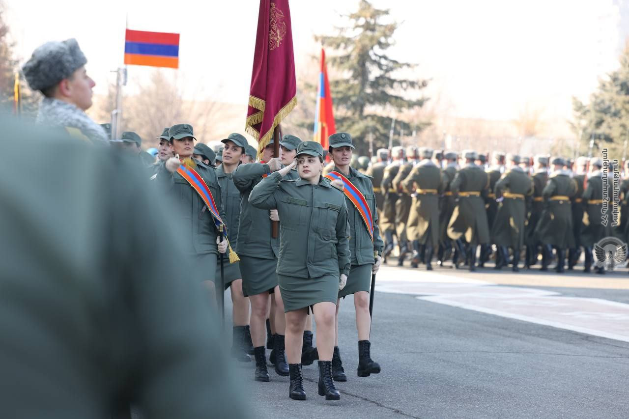 ՏեսանյութերՀունվարի 28-ին ՊՆ վարչական համալիրում մեկնարկել է ՀՀ բանակի կազմավորման 33-ամյակին նվիրված միջոցառումների շարքը՝ ԶՈՒ տարբեր ստորաբաժանումների զինծառայողների շարանցմամբ՝ ռազմանվագախմբի ուղեկցությամբ, որին հաջորդել է պատվոպահակային վաշտի զինծառայողների ցուցադրական դեֆիլեն։