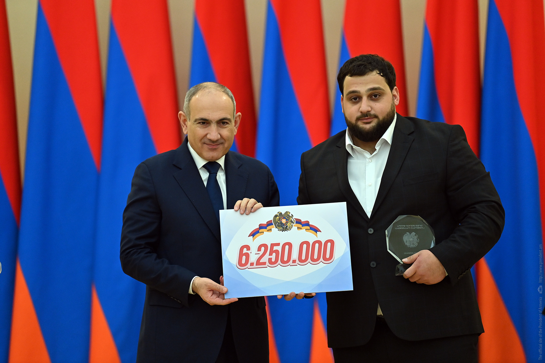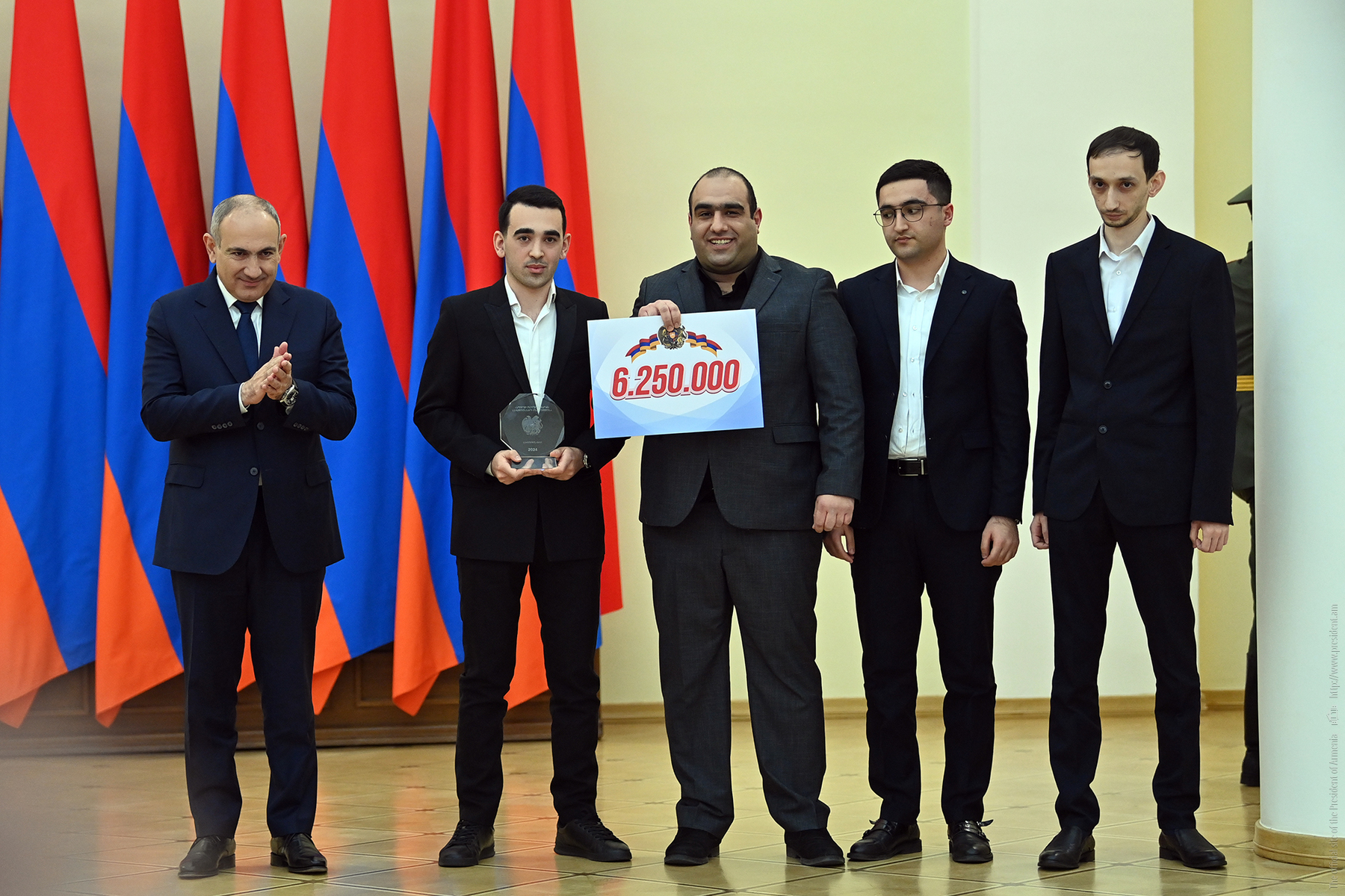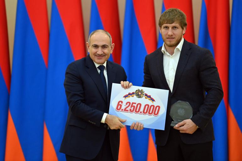 Այնուհետև, Հայաստանի վարչապետ Նիկոլ Փաշինյանը շնորհավորական խոսք է ասել, հանձնել պարգևները և մաղթել մարզիկներին նոր հաղթանակներ ու հաջողություններ։