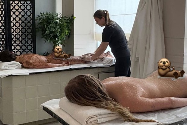 Կադրում նա կապել է իր մազերը և մերկ վիճակում պառկել մերսման սեղանին: