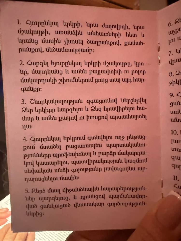 Ուղեցույցում նշված կետերը այն ստացող գիտակից մարդուն, թերեւս, միայն վիրավորանք կարող են պատճառել։ Մասնավորապես նշենք կետերից մի քանիսը. «Զերծ մնալ ղեկավարությանը շողոքորթելուց», «...Օտարազգի կանանց նկատմամբ անհարգալից խոսք, պահվածք, հայացք, ֆիզիկական գործողություն չձեռնարկել», «Զերծ մնալ միջանձնային հարաբերությունները պարզելուց...» եւ այլն։