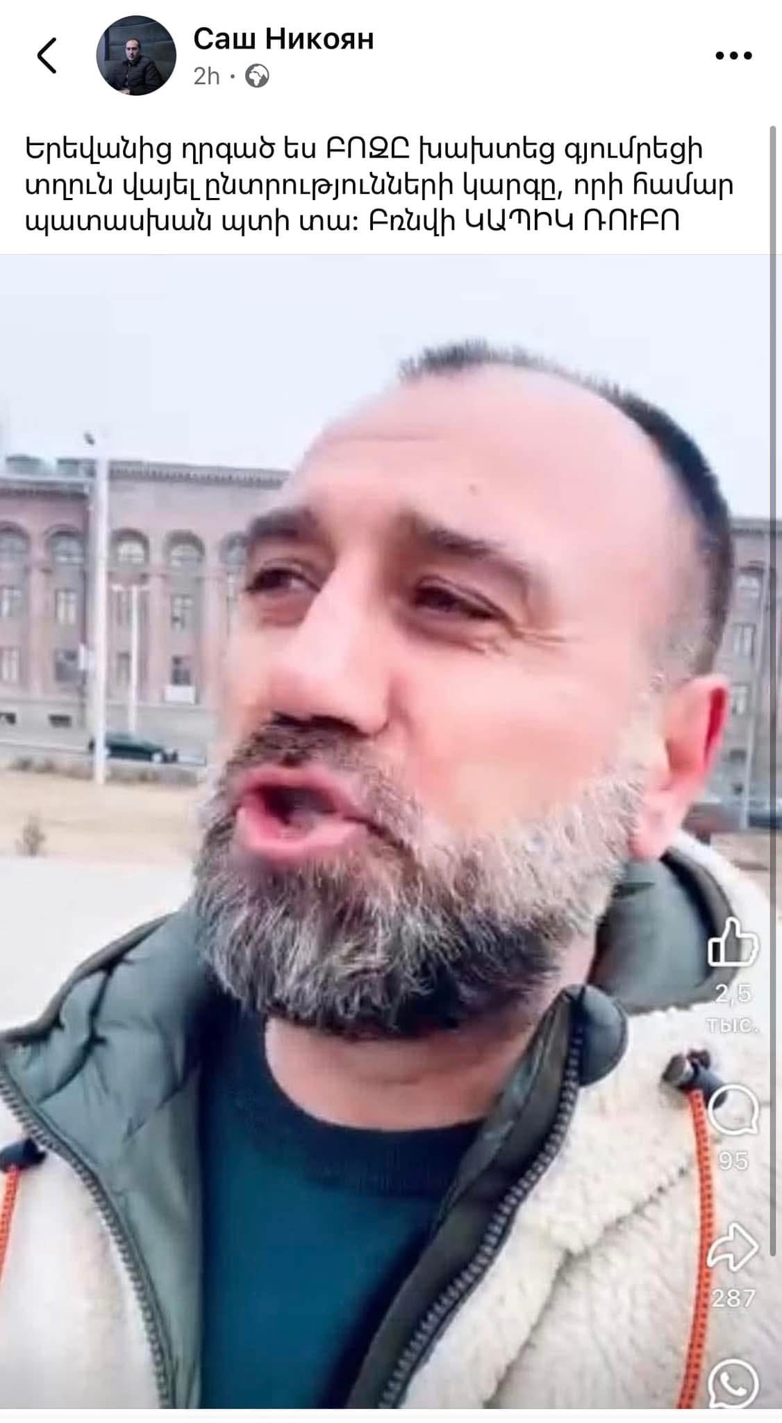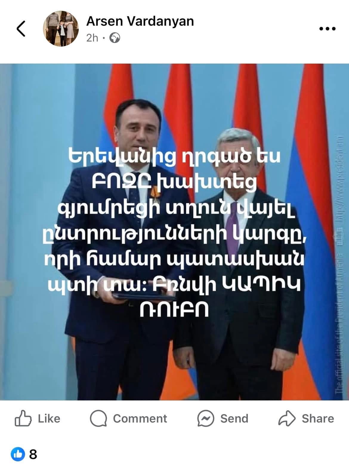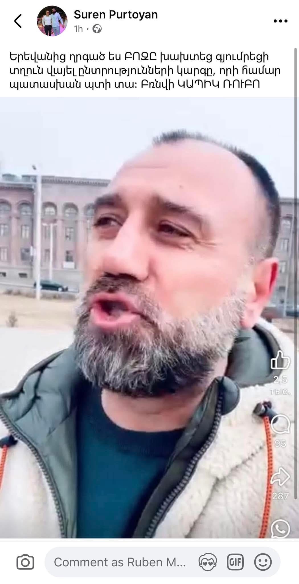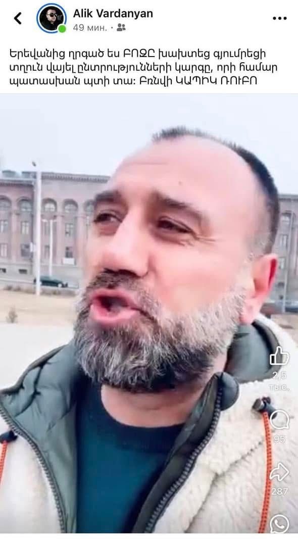 Ակնհայտ է, որ իշխող ուժի համակիրների ու հանրային ծառայողների ներգրավմամբ այս կազմակերպված խուլիգանությունը գտնվում է ոչ թե ընտրական, այլ քրեական օրենսդրության տիրույթում։ Այն ունի քաղաքական պայքարը «ռազբորկաների» վերածելու սադրիչ միտում, որի վերջնանպատակը թերևս ընտրությունների տապալումն է ու ՔՊ-ական չընտրված քաղաքապետի ԺՊ-ի պաշտոնավարման երկարացումը»։