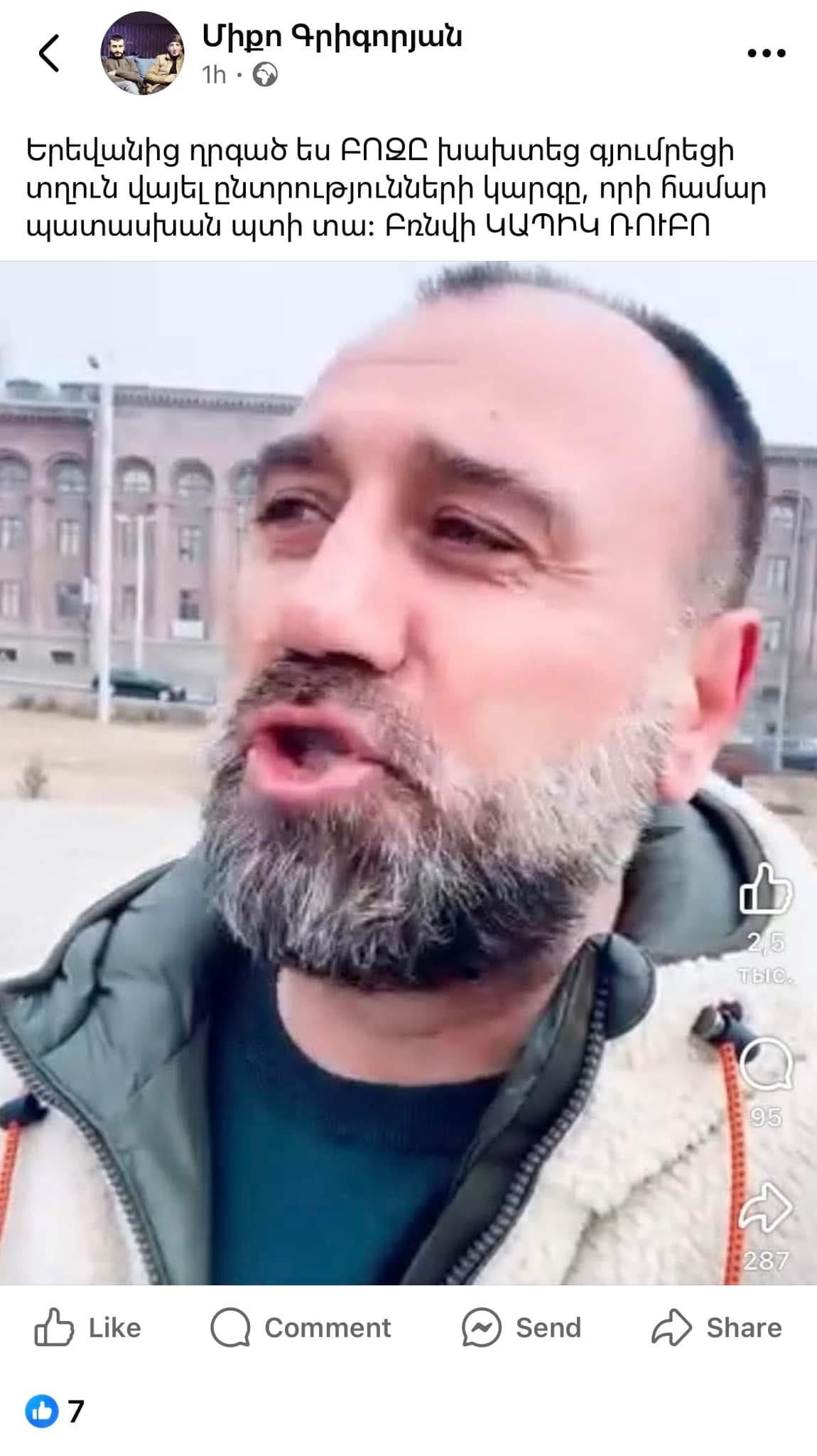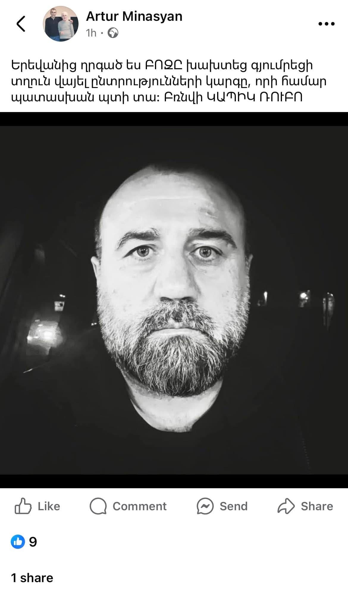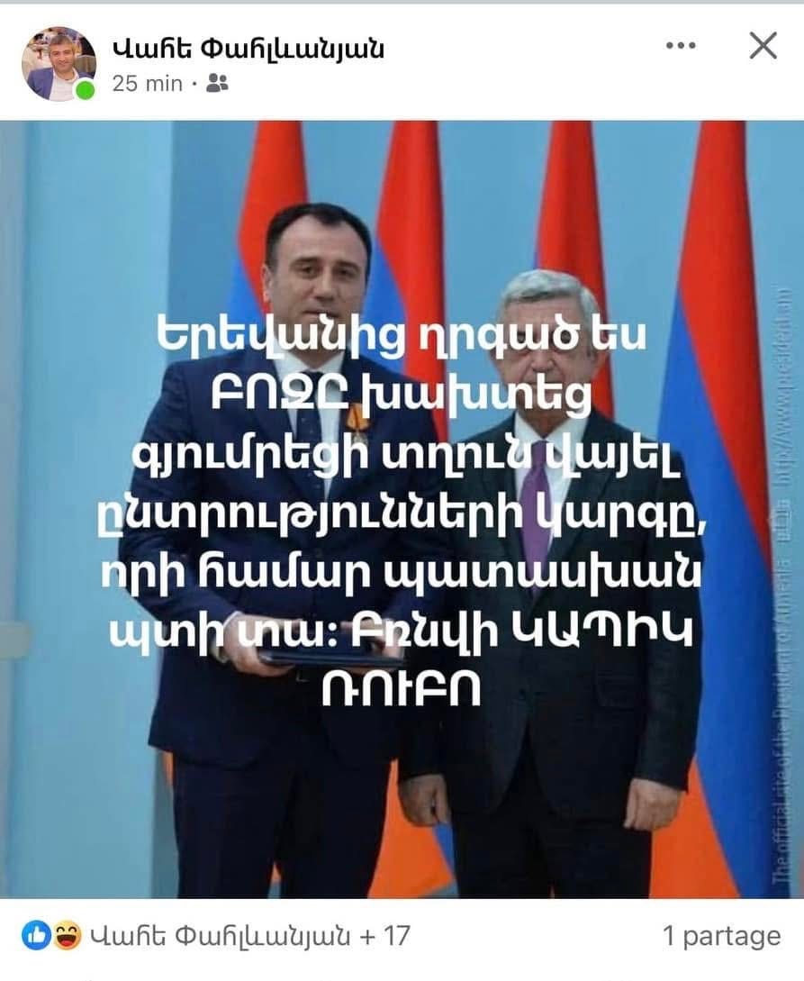 Ակնհայտ է, որ իշխող ուժի համակիրների ու հանրային ծառայողների ներգրավմամբ այս կազմակերպված խուլիգանությունը գտնվում է ոչ թե ընտրական, այլ քրեական օրենսդրության տիրույթում։ Այն ունի քաղաքական պայքարը «ռազբորկաների» վերածելու սադրիչ միտում, որի վերջնանպատակը թերևս ընտրությունների տապալումն է ու ՔՊ-ական չընտրված քաղաքապետի ԺՊ-ի պաշտոնավարման երկարացումը»։