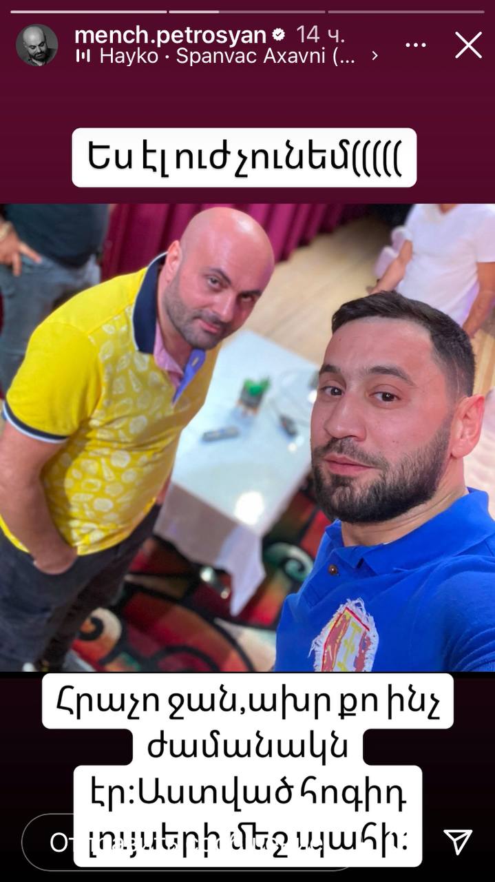 Վերջին օրերին Պրոդյուսեր Արմեն Պետչոսյանը՝ Մենչը ինստագրամի իր միկրոբլոգում պարբերաբար ցավալի լուրեր է հայտնում։