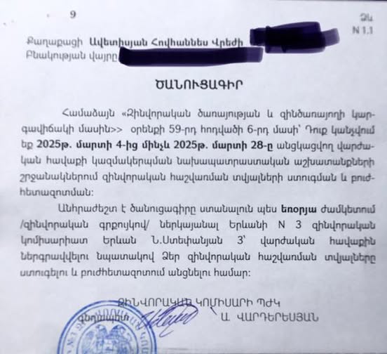 Այսօր Ավանի Ոստիկանական բաժանմունքից զանգեցին և 16:40 վերցրի այս ծանուցագիրը: