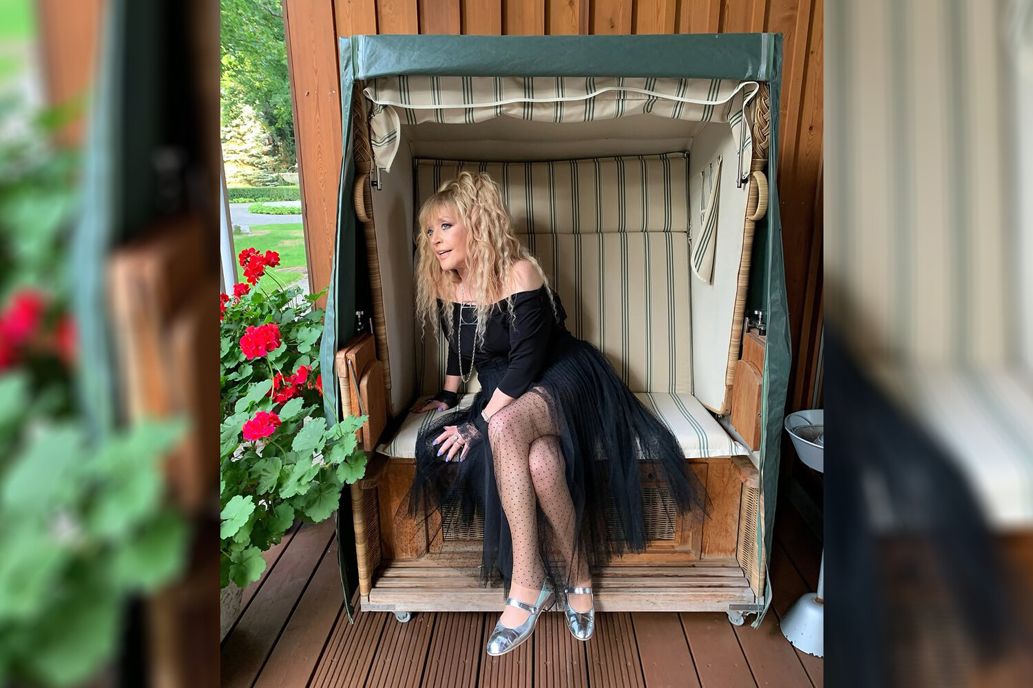 Ալլա Պուգաչովան տեսախցիկի առջեւ ներկայացել է բաց ուսերով, սեւ տոպով եւ կիսաթափանցիկ շրջազգեստով: