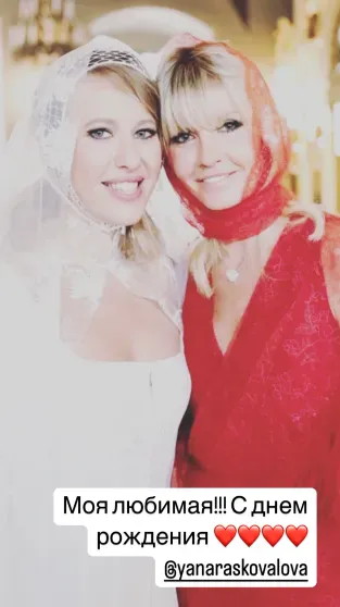 Քսենյա Սոբչակը շնորհավորել է Յանա Ռասկովալովային ծննդյան 49-րդ տարեդարձի կապակցությամբ՝ ցուցադրելով արխիվային լուսանկար։ Լուսանկարն արվել է հաղորդավարի հարսանիքին Կոնստանտին Բոգոմոլովի հետ 2019 թվականին։