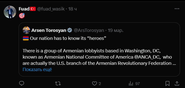 «Նրանք (ANCA–ն) հայ կամ ամերիկացի հայրենասերներ չեն, այլ Իրանի և Ռուսաստանի հետ միավորված շահերի խումբ»,– մեկնաբանություններում գրել է թուրք օգտատերը։