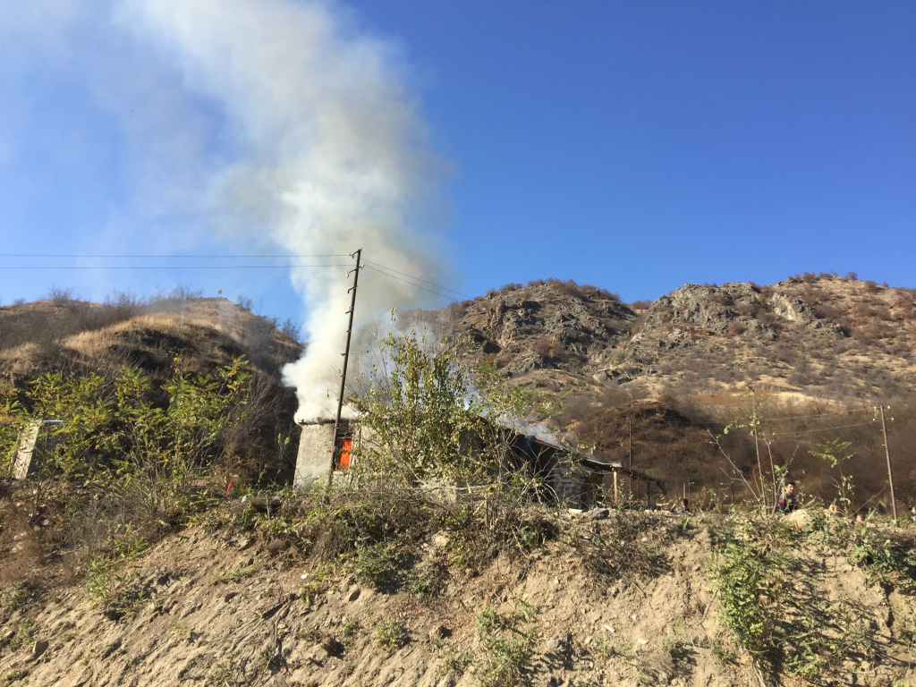 Обратный путь в Ереван занял очень много времени. Доехав до Карвачара, встали в неподвижную колонну машин, которая за три часа не продвинулась ни на метр. Всё вокруг полыхало. Дым и туман накрыли округу. Оставался час до полуночи 15 ноября 2020.
