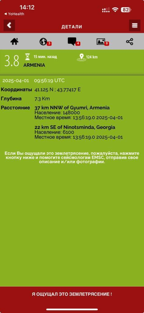 Ըստ ԶԼՄ-ների հրապարակումների՝ այն զգացվել է Գյումրիում և Տաշիրում։