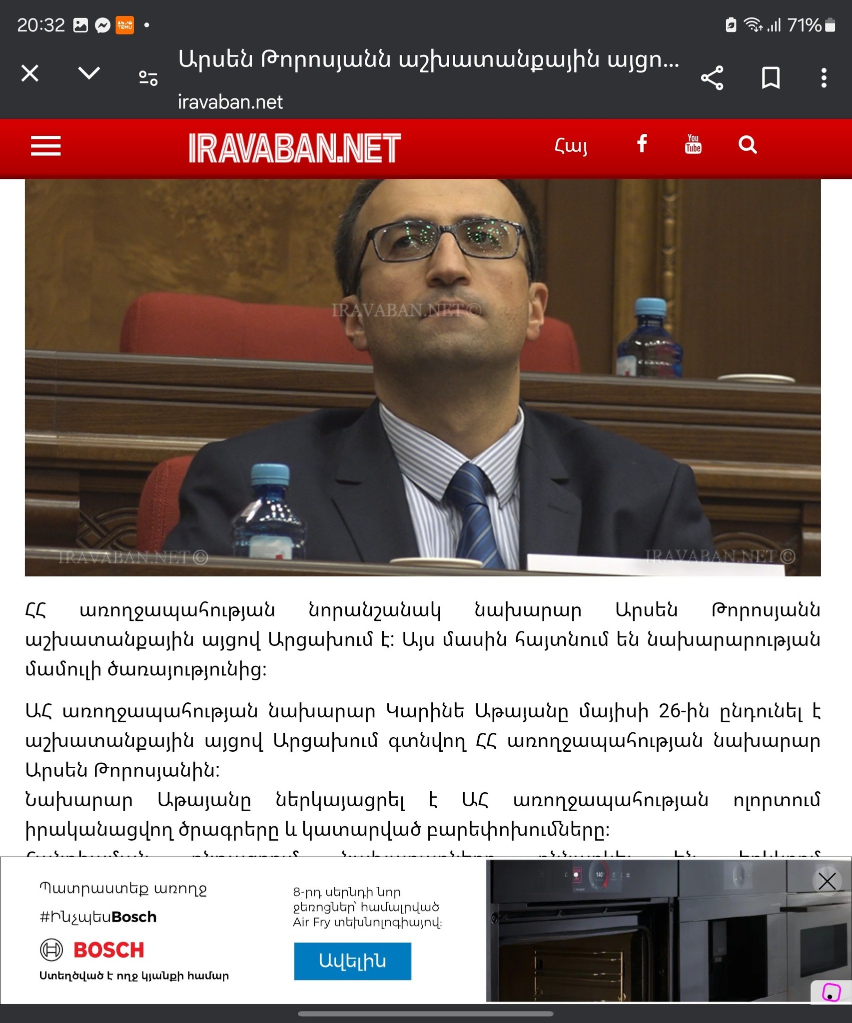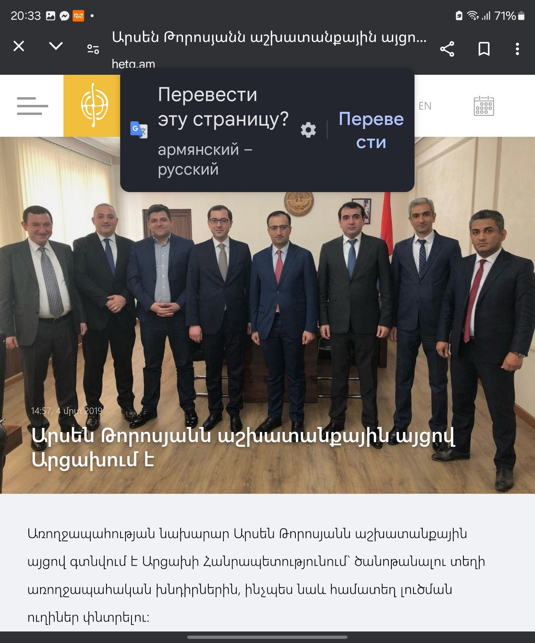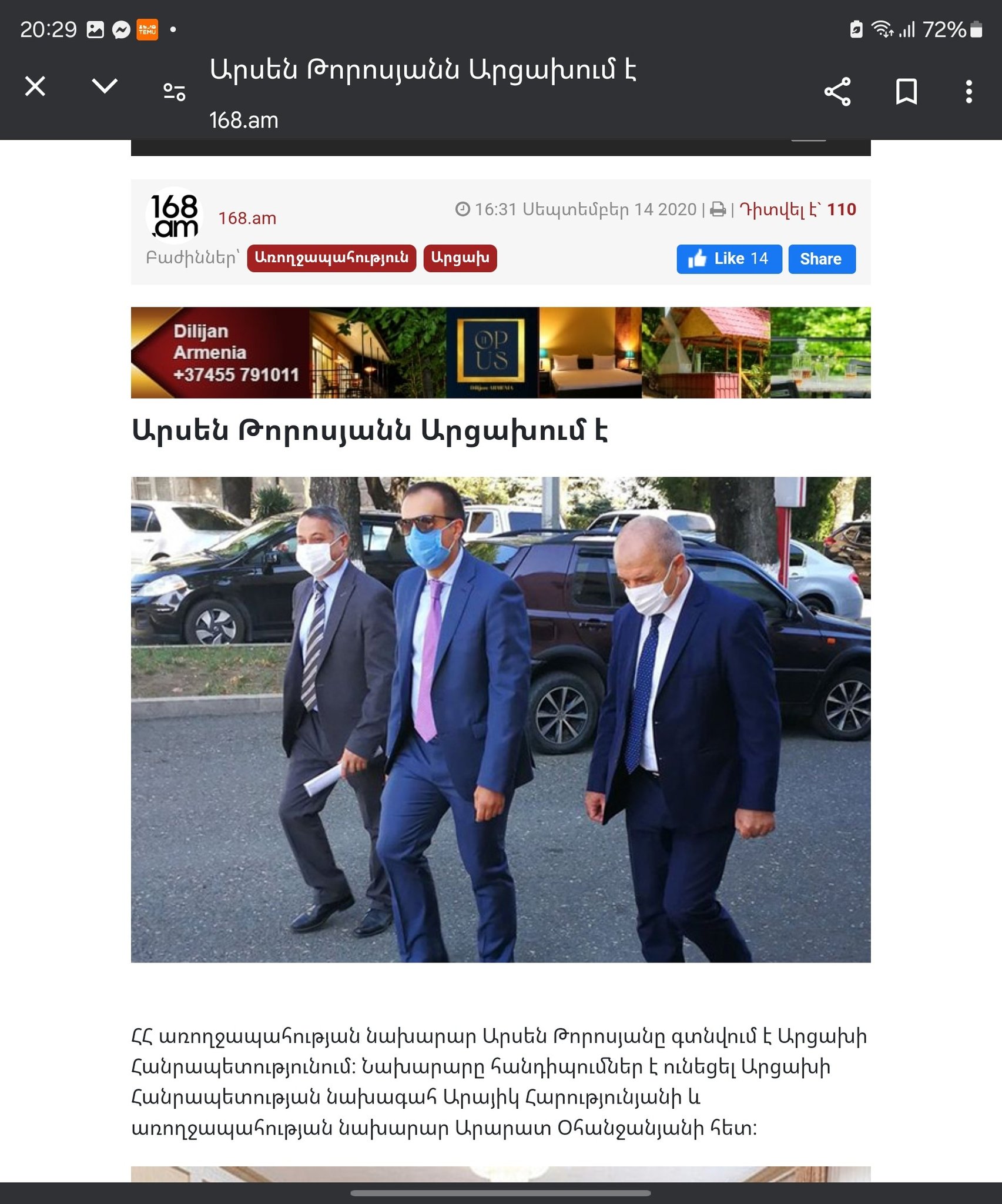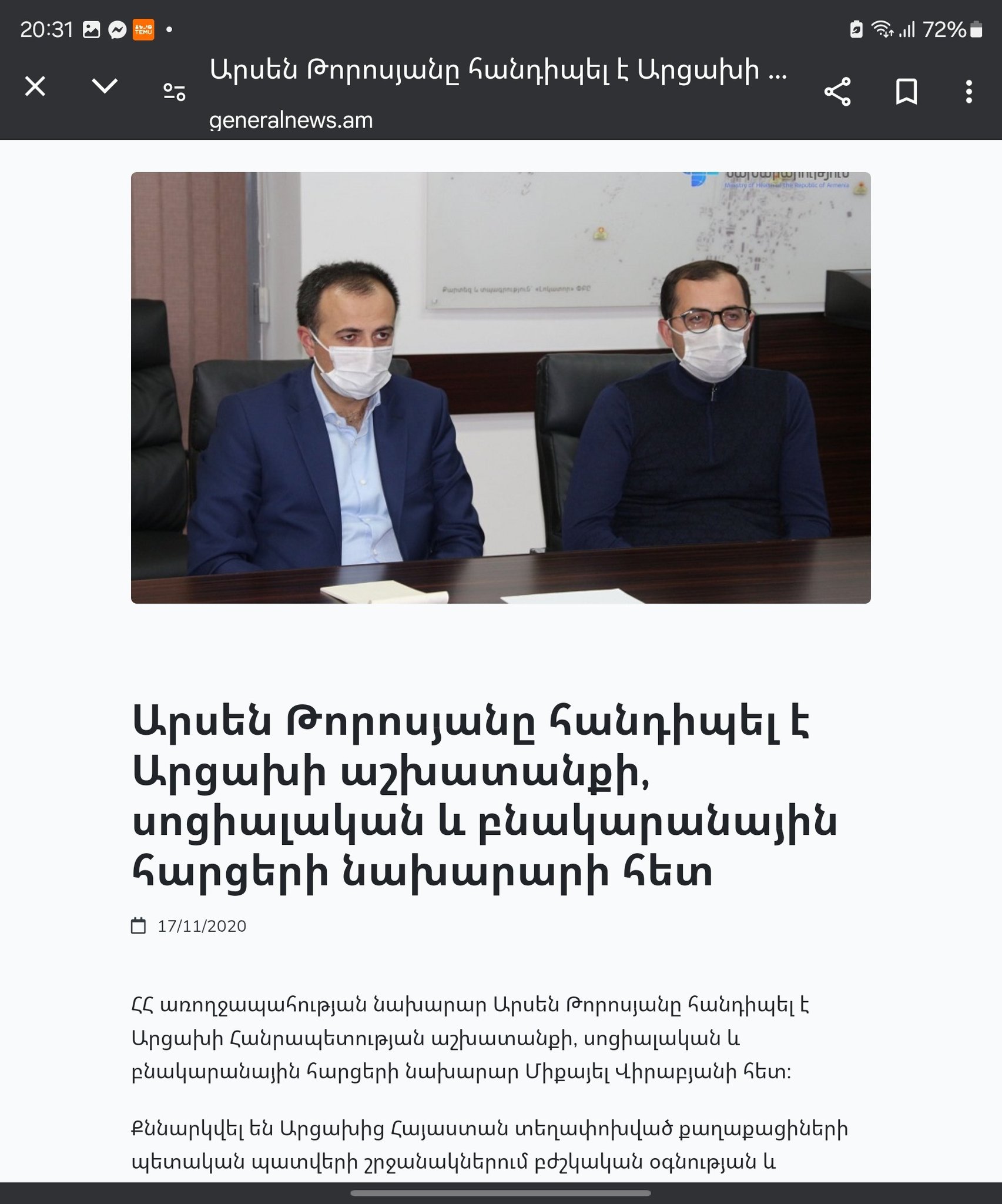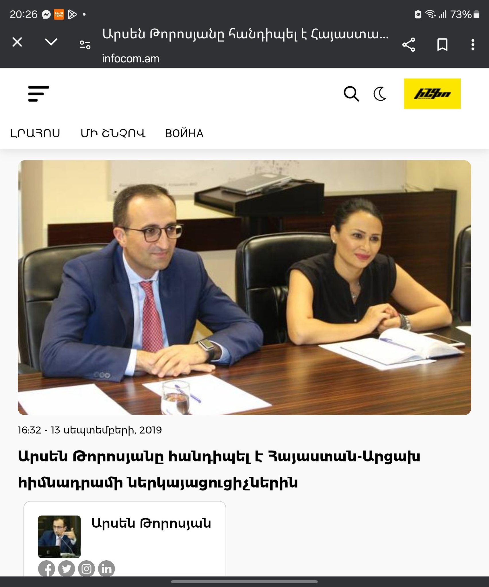 Պարզապես տեղադրում եմ մի շարք մամուլի հաղորդագրություններ, թե ինչպես էին Arsen Torosyan ին ընդունում ԱՐՑԱԽՈՒՄ, ցավում եմ, որ այսօր նա ապաշխարելու փոխարեն ատելություն է տարածում մեր հայրենակիցների մեջ, խոսում վերջակետերով։ Իրականում վերջակետ պետք է դրվի, բայց այլ տեղերում ...