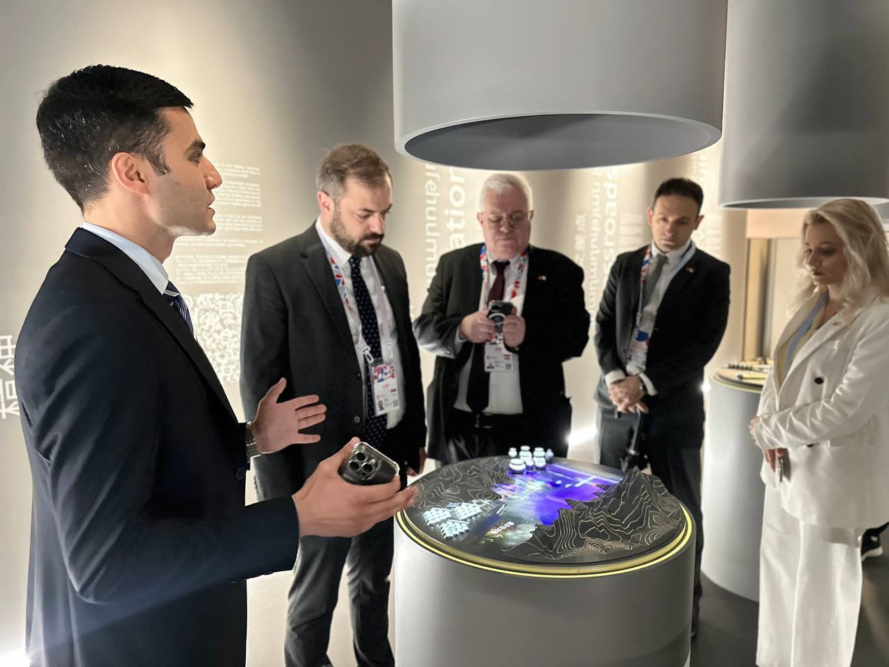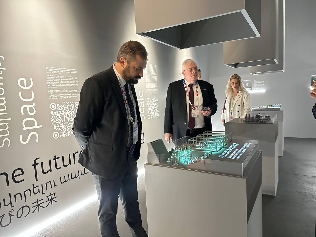 Նախարարը շրջել է Հայաստանի ազգային տաղավարով, որը ներկայացնում է ութ «սյուներ», որոնցից յուրաքանչյուրն արտացոլում է ՀՀ-ն ներկայացնող հիմնարար մի ուղղություն՝ հնագույն պատմությունից և ստեղծարար մտածողությունից մինչև ժամանակակից տեխնոլոգիաներ և խաղաղությանն ուղղված հանձնառություն։