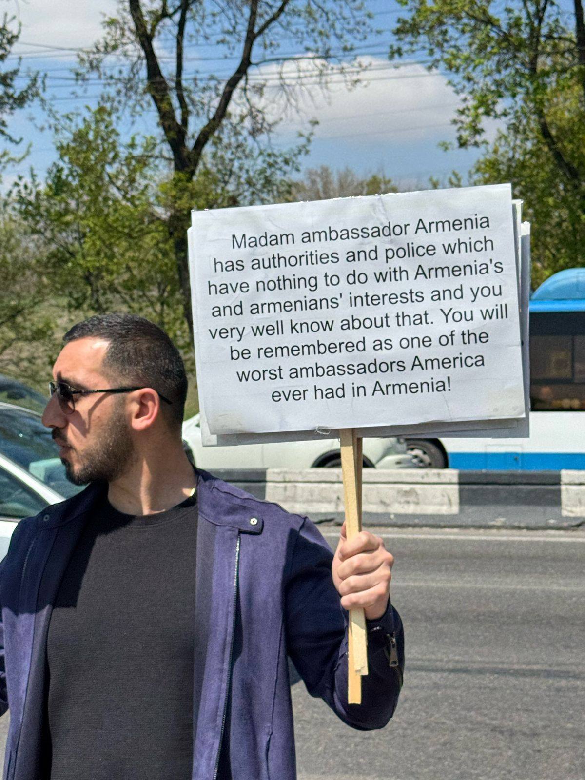 1. տիկին դեսպան Հայաստանն ունի իշխանություններ ու ոստիկանություն, որոնք ոչ մի կապ չունեն Հայաստանի ու հայերի շահերի հետ ու դուք շատ լավ գիտեք այդ մասին։ Դուք հիշվելու եք որպես վատագույն դեսպաններից մեկը որ ԱՄՆ երբևէ ունեցել ա Հայաստանում։