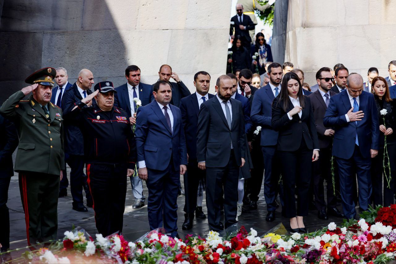 ՀՀ բարձրագույն ղեկավարությունը ծաղկեպսակներ է դրել հուշակոթողին, ծաղիկներ խոնարհել Հայոց ցեղասպանության զոհերի հիշատակը հավերժացնող անմար կրակի մոտ: