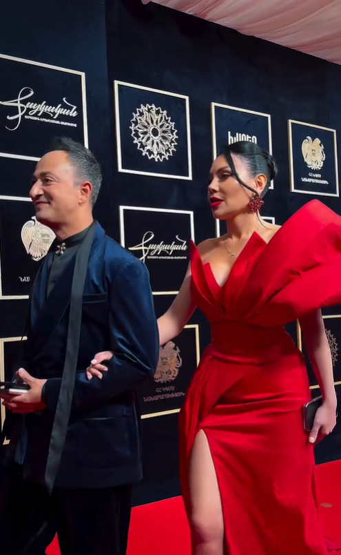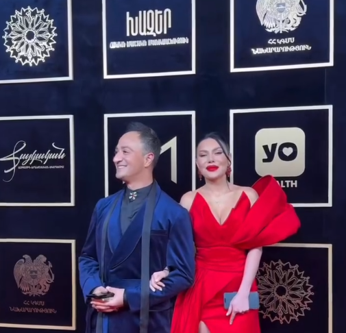 Դերասանուհի Արփի Գաբրիելյանը «Խազեր» մրցանակաբաշխությանը ներկայացել է գործընկերոջ՝ Ավետ Բարսեղյանի հետ։