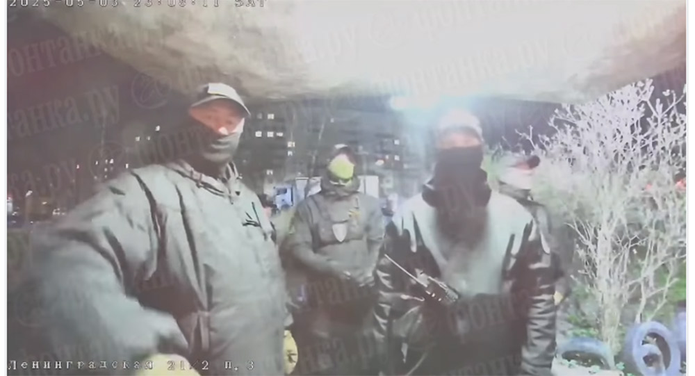 Բնակարանի տերը պատմել է, որ երբ ինքը ժամանել է դեպքի վայր, հարթակի վրա տեսել է «դիմակավորված մեծ թվով տղամարդկանց՝ սև հագուստով, որոնց վրա պատկերված էին «Ռուսական համայնքի» խորհրդանիշները»։