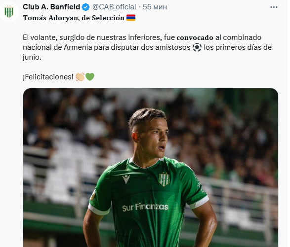 Արգենտինական «Բանֆիլդի» ֆուտբոլիստը հրավիրվել է Հայաստանի ազգային հավաքական