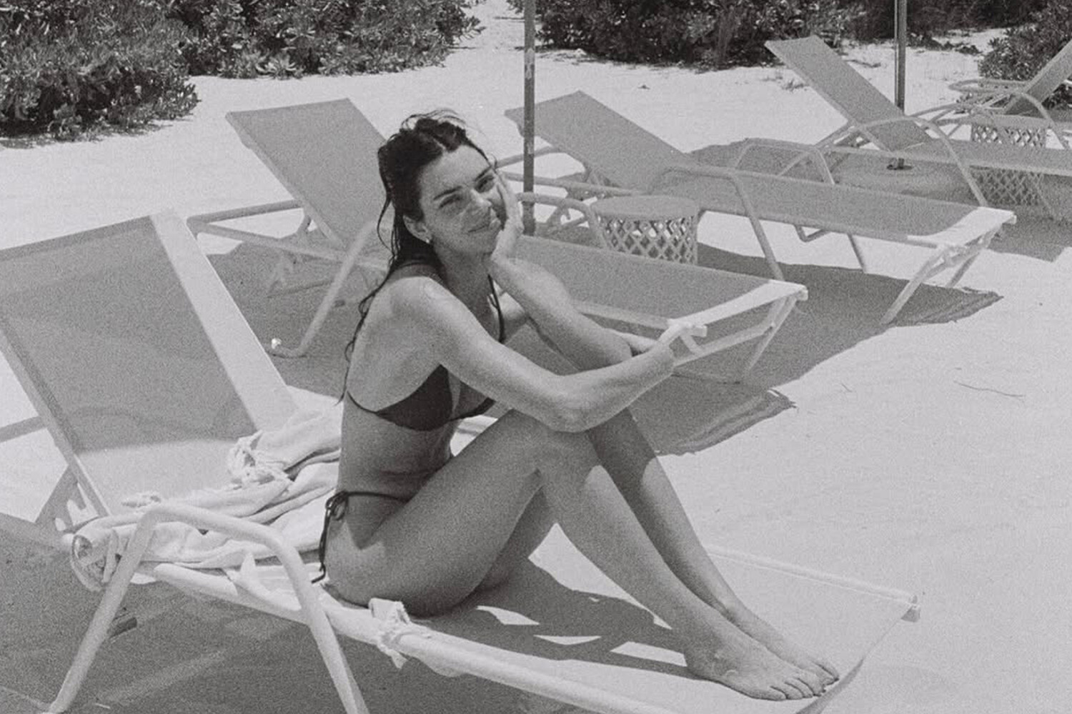 29-ամյա Քենդալ Ջենները կեցվածք է ընդունել փոքրիկ բիկինիով։ Կադրում նա նստած է պառկելաթոռին՝ արձակված վարսերով և առանց դիմահարդարման։