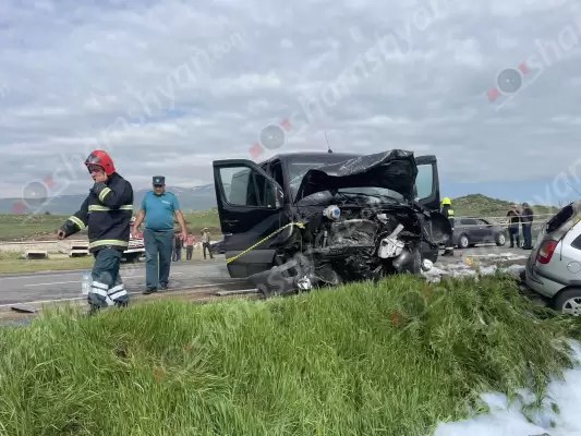 Պարզվել է, որ բախվել են «Opel» մակնիշի ավտոմեքենան և «Volkswagen» մակնիշի միկրոավտոբուսը․ «Opel» մակնիշի ավտոմեքենյում հրդեհ է բռնկվել։