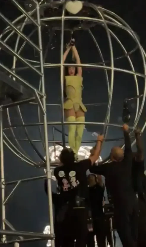 Քեյթի Փերին համերգի ընթացքում քիչ էր մնում ընկներ օդում սավառնող մետաղական գնդից (լուսանկար)