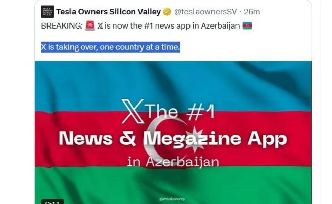 X-ը ամենատարածվածն է դարձել Ադրբեջանում լրատվական հավելվածների ներբեռնումների վարկանիշում: Այս մասին հայտնել է Ամերիկացի միլիարդատեր Իլոն Մասկը X-ում։