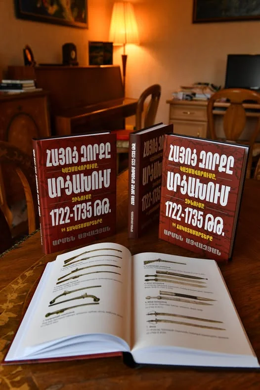 «Աշխատության մեջ առաջին անգամ համալիր ուսումնասիրության են ենթարկվում 1720-ական թթ. Արցախում (Ղարաբաղ) հայկական զորքերի կազմավորումը, զինումը, թվաքանակը, հրամանատարական կազմը և մարտական պատմությունը՝ գլխավոր ճակատամարտերի ժամանակագրության, վայրերի և արդյունքների ճշտմամբ։ Սկզբնաղբյուրների մանրազնին քննության հիման վրա բացահայտվում են հայոց սպառազինման գործընթացը և հիմնական միջոցները՝ տեղական արտադրությունը և թշնամուց զենքի առգրավումը։ Հստակեցվում են զենքերի տեսակները, դրանց արդիականությունը և քանակը։ Վերլուծվում են այդ տարիներին Արցախում առաջացած երկու անկախ հայկական ռազմաֆեոդալական միավորումների հարաբերությունները և կառուցվածքը, համատեղ պայքարը օսմանյան զավթիչների դեմ, ինչպես նաև ներքին հակասություններն ու բախումները։ Պարզվում և մեկնաբանվում են Արցախում և Սյունիքում ձեռքի հրազենի՝ հրացանների և ատրճանակների, զանգվածային տարածման սոցիալ-քաղաքական նշանակալի հետևանքները, ներառյալ յուրօրինակ պետական-հասարակական համակարգում տեղ գտած ազգային ժողովրդավարության տարրերը»։