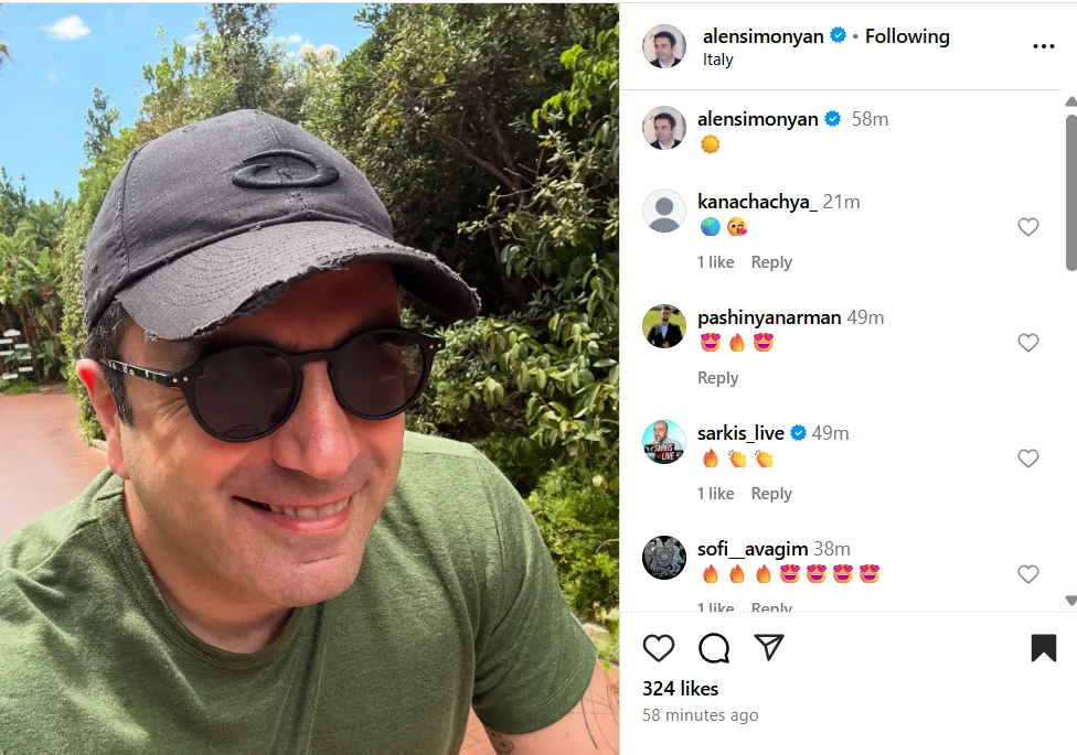 Ալեն Սիմոնյանը նոր կադրեր է հրապարակել Իտալիայից (տեսանյութ)