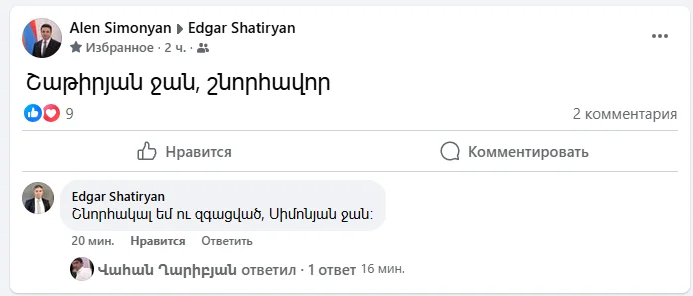 Շաթիրյան ջան, շնորհավոր, շնորհակալ եմ Սիմոնյան ջան