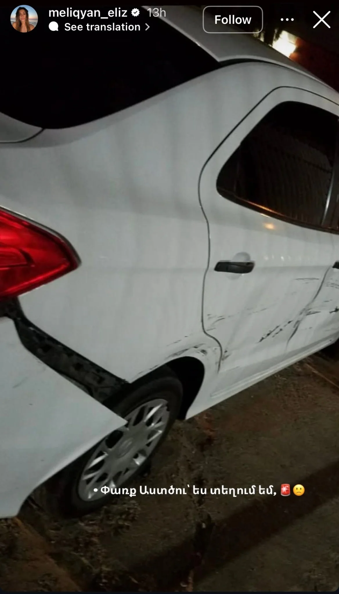 Արամ Մելիքյանի դուստրն ավտովթարի է ենթարկվել (լուսանկարներ)