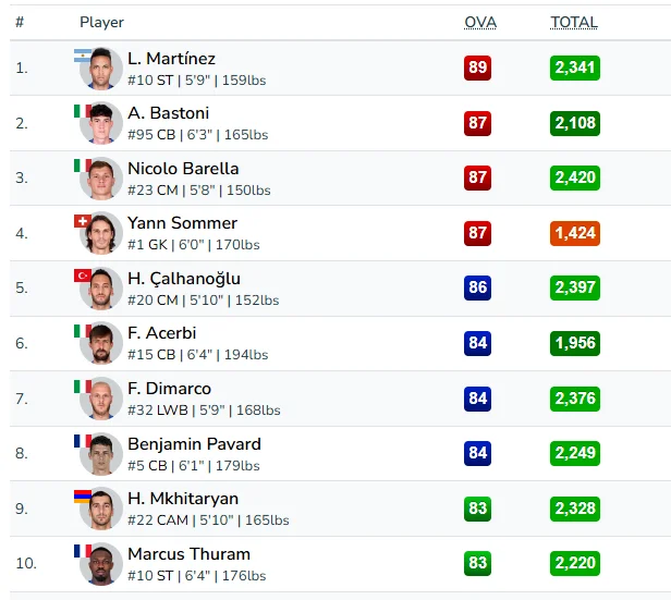 «Ինտերի» կազմում առաջատարը Լաուտարո Մարտինեսն է՝ 88 վարկանիշով: