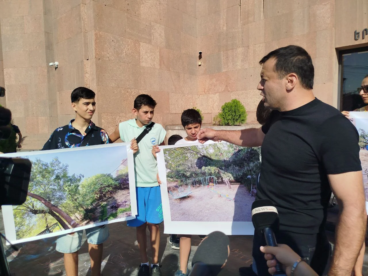 Ակցիային մասնակցել են նաև երեխաներ, որոնք իրենց պատրաստած պաստառներով ու կոչերով դիմել են քաղաքապետ Տիգրան Ավինյանին։ Փոքրիկները պահանջել են անձամբ հանդիպում քաղաքապետի հետ՝ վանկարկելով․ «Տիգրան Ավինյան, իջե՛ք, մեզ խոստացե՛ք, որ մեր խաղահրապարակը շինհրապարակի չեք վերածի»։