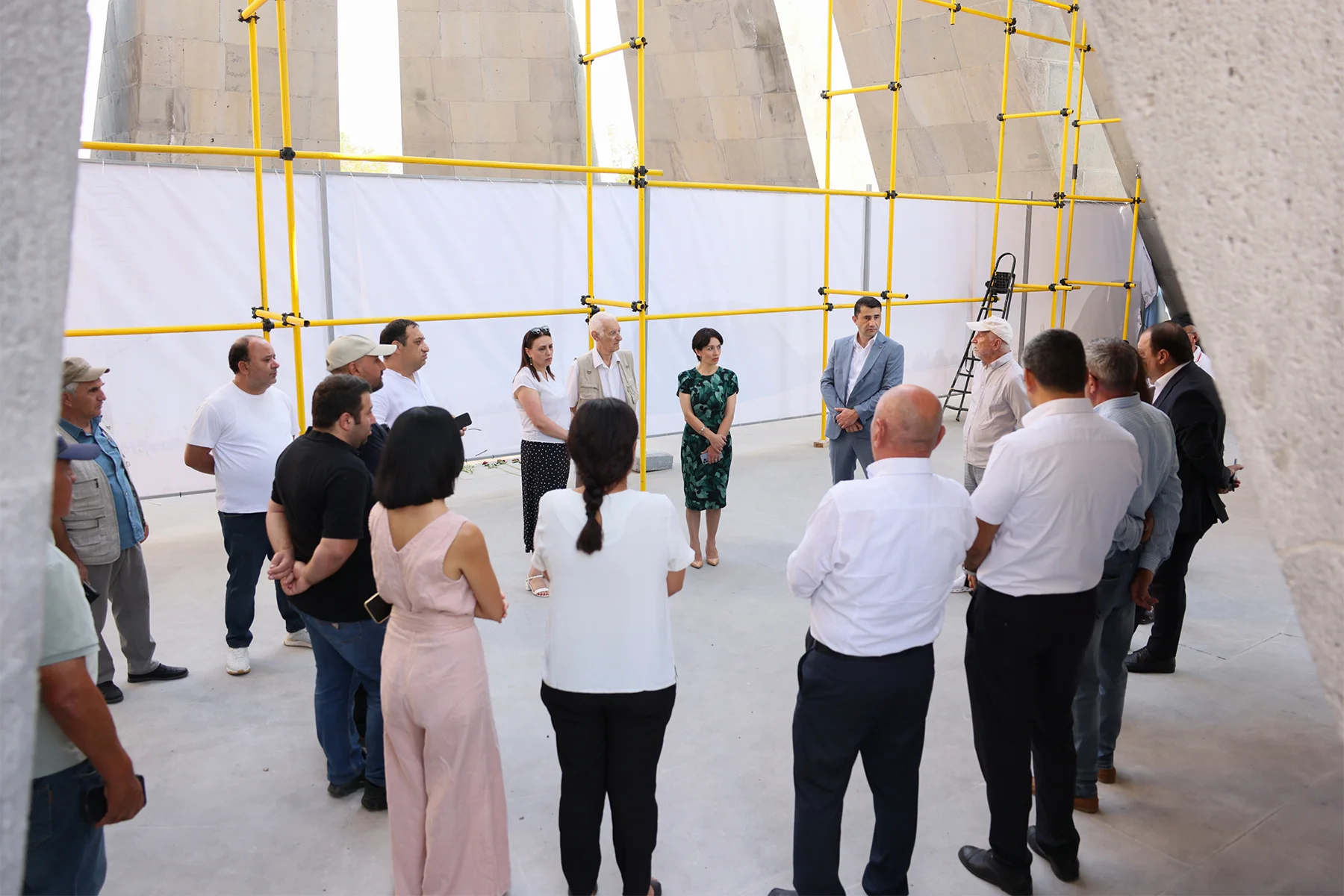 Աշխատանքի ընթացքը ներկայացրել են Հայոց ցեղասպանության թանգարան-ինստիտուտի տնօրեն Էդիտա Գզոյանը, հուշահամալիրի հիմնանորոգման ճարտարապետական խմբի անդամները՝ նախագծի համահեղինակ Սաշուր Քալաշյանի գլխավորությամբ, շինարարությունն իրականացնող կապալառու կազմակերպության ներկայացուցիչներ, պատասխանատու պաշտոնյաներ: