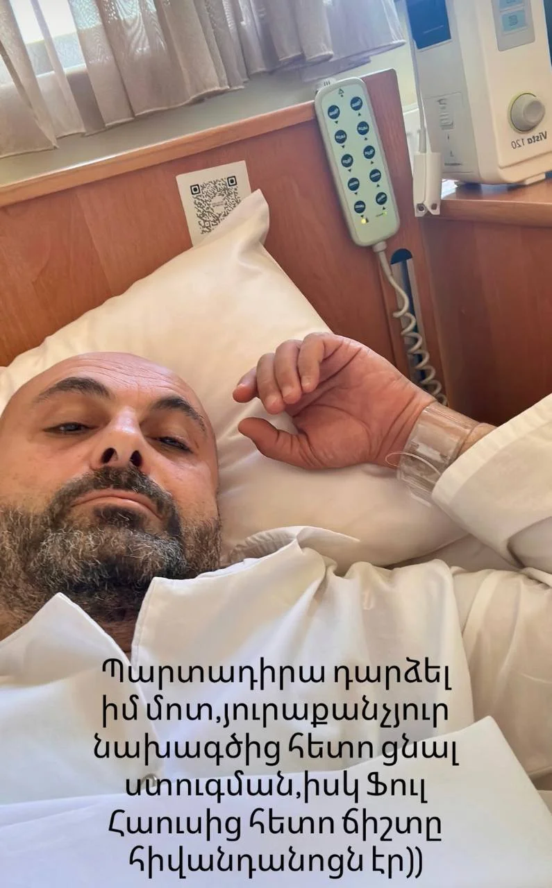 Դերասան, պրոդյուսեր Արմեն Պետրոսյանը (Մենչը) սոցցանցի իր էջում լուսանկար է հրապարակել հիվանդանոցից և կից գրել․