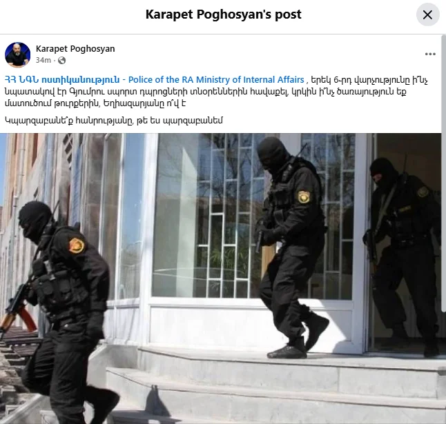 «ՀՀ ՆԳՆ ոստիկանություն, երեկ 6–րդ վարչությունը ի՞նչ նպատակով էր Գյումրու սպորտ դպրոցների տնօրեններին հավաքել, կրկին ի՞նչ ծառայություն եք մատուծում թուրքերին, Եղիազարյանը ո՞վ է։