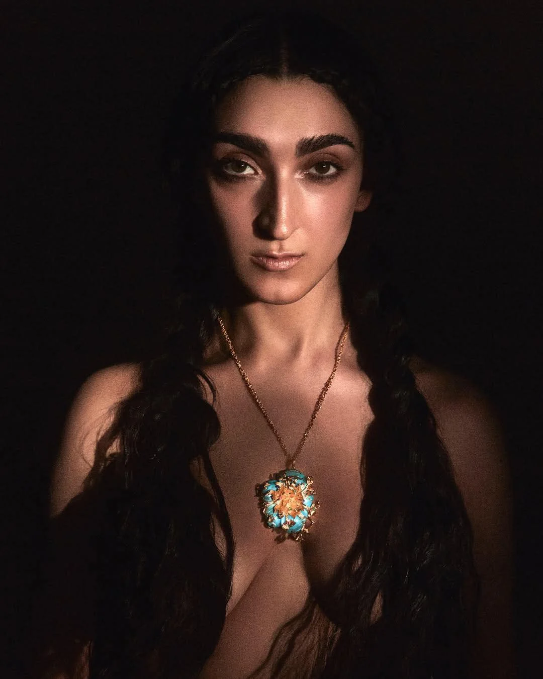 Կադրում Gucci-ի հայ մոդելը թոփլես է, արձակված վարսերով։