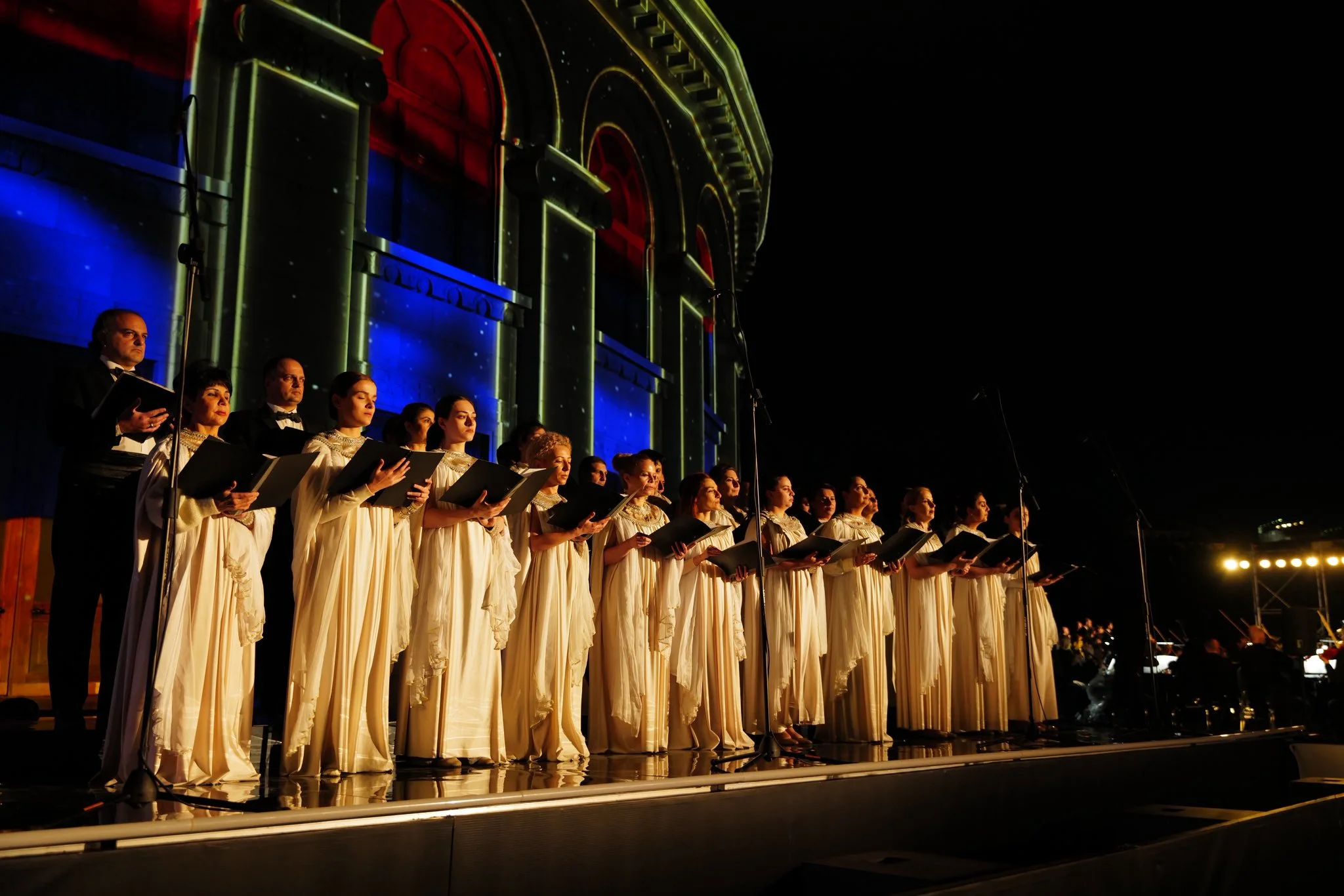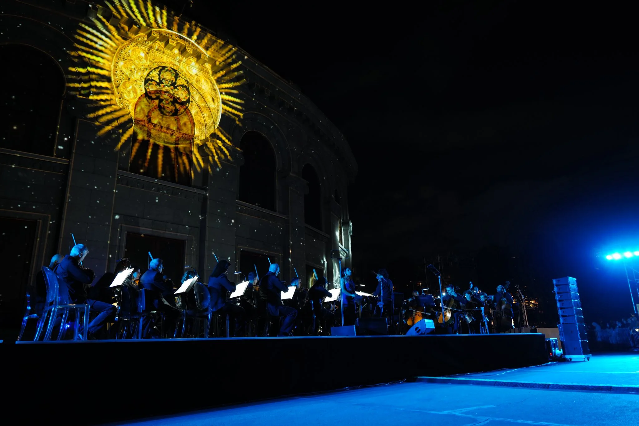Ալեքսանդր Սպենդիարյանի անվան օպերայի և բալետի ազգային ակադեմիական թատրոնի շենքն իր նոր լուսավորությամբ: