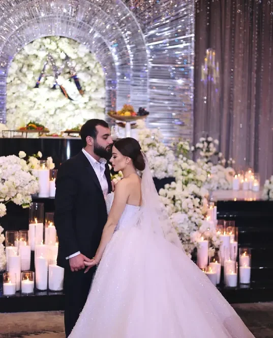 Հարսանեկան խնջույքը տեղի է ունեցել Դվին հյուրանոցային համալիրի մեծ դահլիճում, որին ներկա են եղել շոու բիզնեսի ճանաչված դեմքերը։
