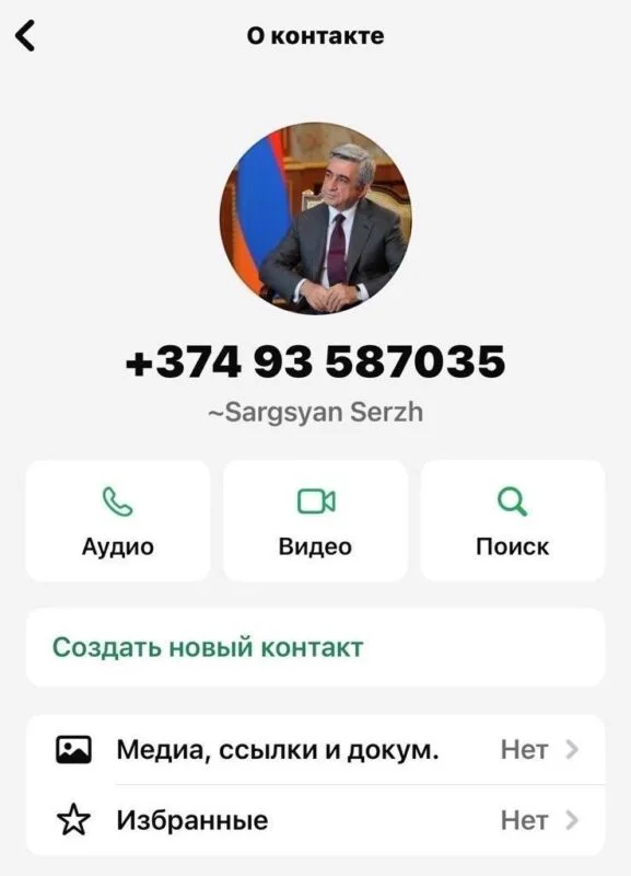 WhatsApp հավելվածում ստեղծվել է ՀՀ երրորդ նախագահ Սերժ Սարգսյանի անունով կեղծ օգտահաշիվ (+374 93 587035), որից տարբեր մարդկանց ուղարկվում են հաղորդագրություններ։