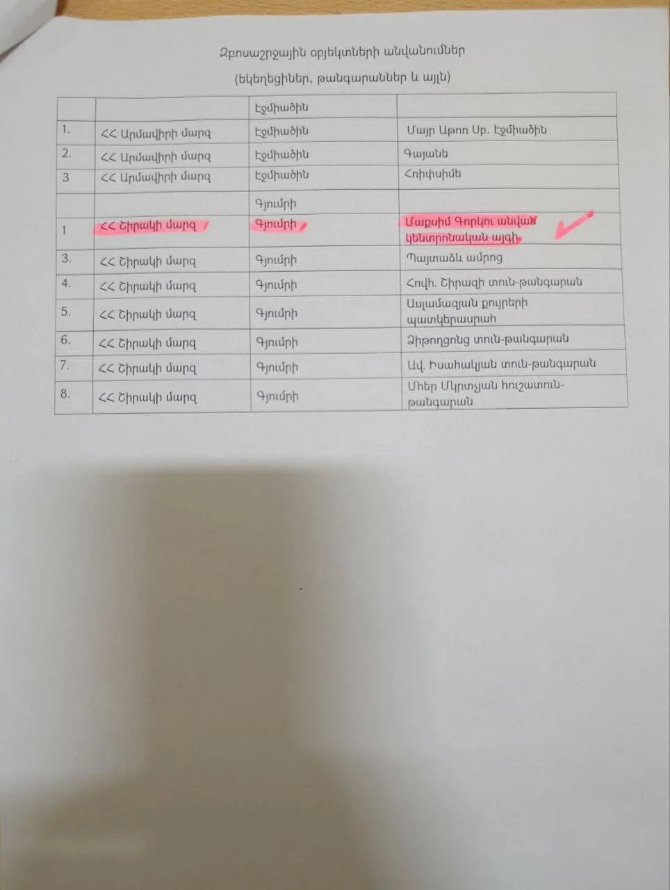Սխալով, որն արվել է վերջինների օրոք, այժմ զբաղվելու է քաղաքապետարանը։ Անվանումների ցանկը, փաստորեն, տվել է Շիրակի մարզպետը, տվել է սխալով, սխալն էլ կրկնել են Սարիկ Մինասյանը և քաղաքապետարանի աշխատակազմը»։