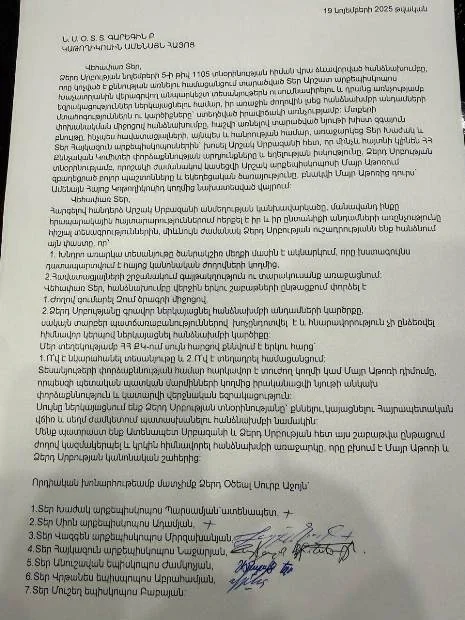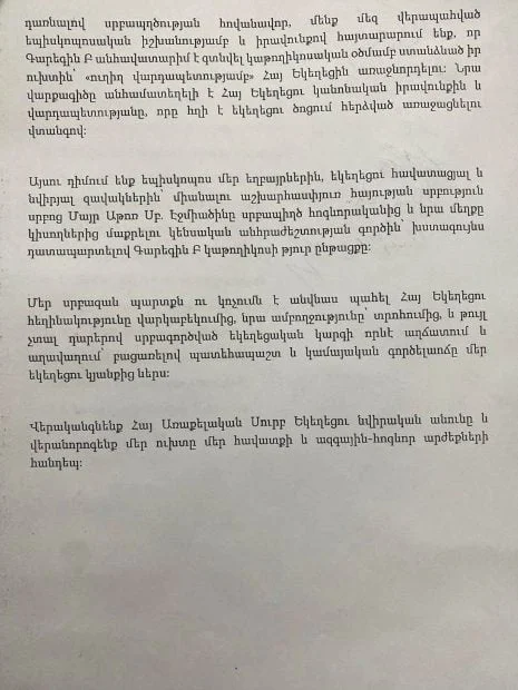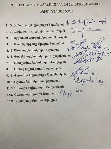 Տարածվող հայտարարությունում նշված են հոգևորականների անունները, նրանցից ոմանք ստորագրել են դրա ներքո: