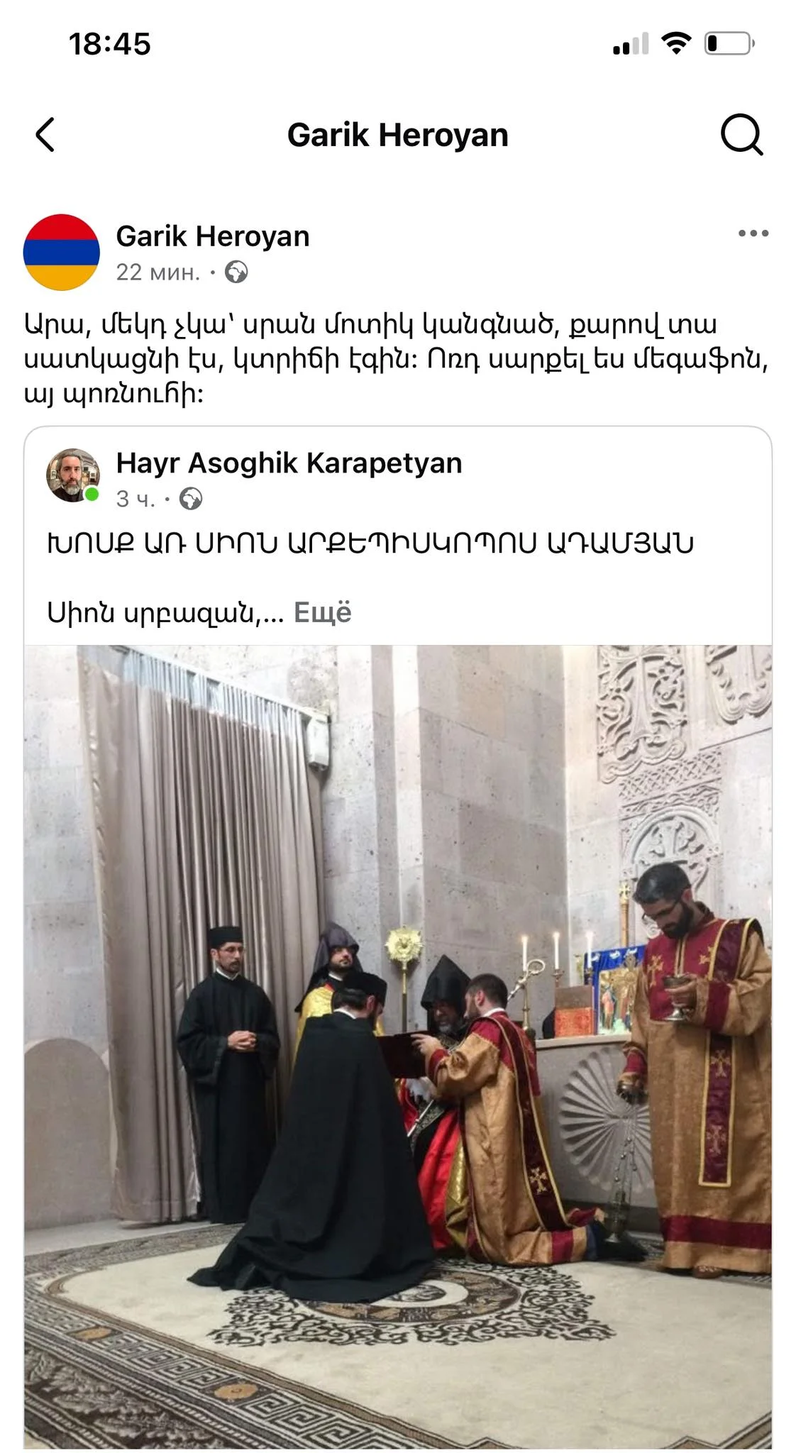 Հայր Ասողիկը դիմում է իրավապահներին․ բռնության կոչեր են հնչել