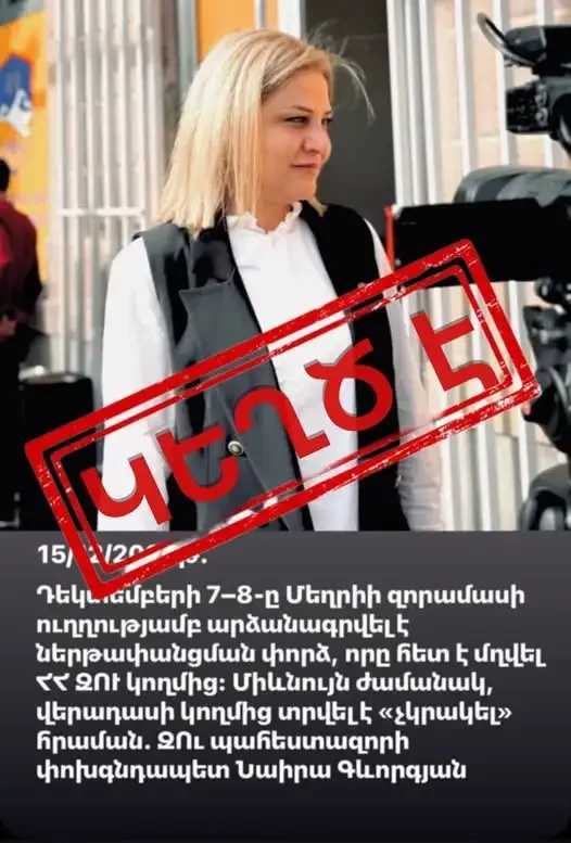 ԶԼՄ գործընկերներին կոչ ենք անում ձեռնպահ մնալ նմանօրինակ հերյուրանքների արտատպումից և չներքաշվել ՀՀ շուրջ հիբրիդային սպառանալիքներ ստեղծելու դատապարտելի գործընթացի մեջ: