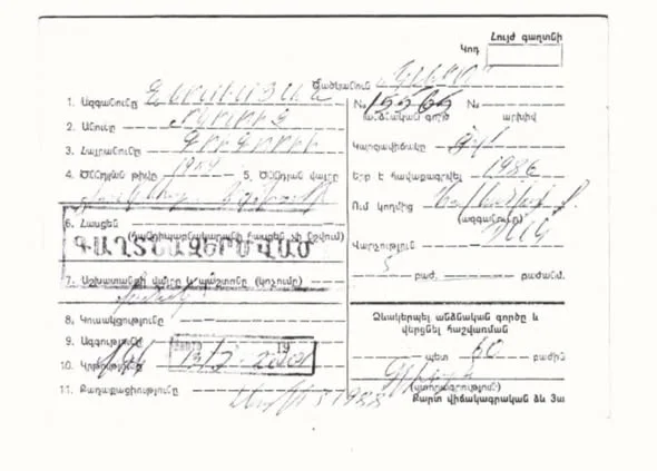 1. Նիկոլի անձնական օգտագործման ԱԱԾ գաղտնազերծած իբր հավաքագրման փաստաթղթի պատճենը,